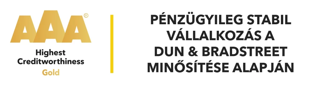 A Dun&Bradtsreet objektív cégminősítése alapján cégünk immár 5. éve stabil szereplője Magyarország pénzügyileg legmegbízhatóbb cégeinek. Ezzel újabb mérföldkő elé érkeztünk, az idei évben AAA Gold tanúsítványt érdemelve.