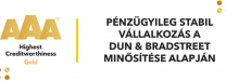 A Dun&Bradtsreet objektív cégminosítése alapján cégünk immár 5. éve stabil szereploje Magyarország pénzügyileg legmegbízhatóbb cégeinek. Ezzel újabb mérföldko elé érkeztünk, az idei évben AAA Gold