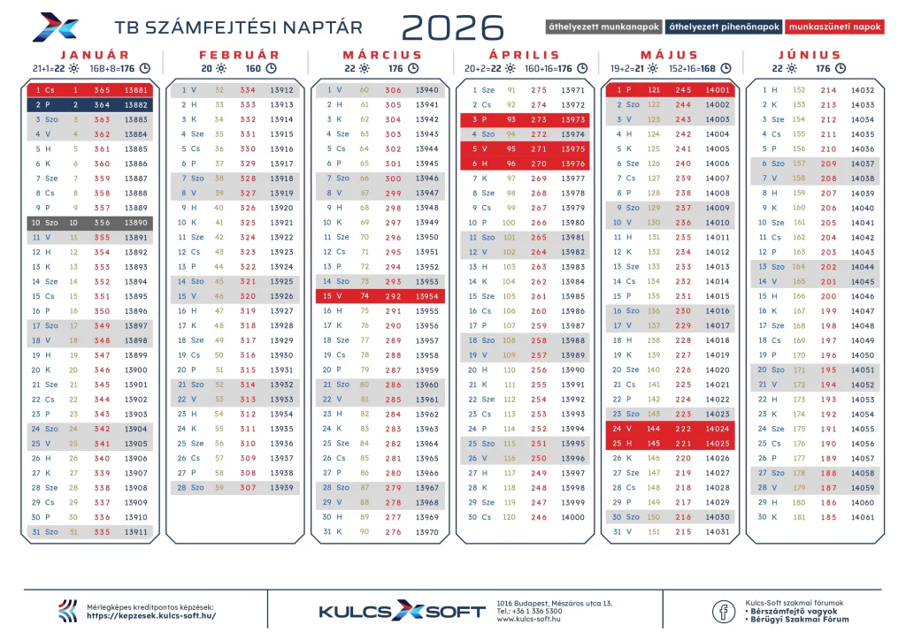 Az idei évben is a piacon elsők közt elérhető a Kulcs-Soft 2026-os TB naptára.